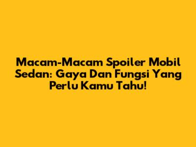 Macam-Macam Spoiler Mobil Sedan: Gaya Dan Fungsi Yang Perlu Kamu Tahu!