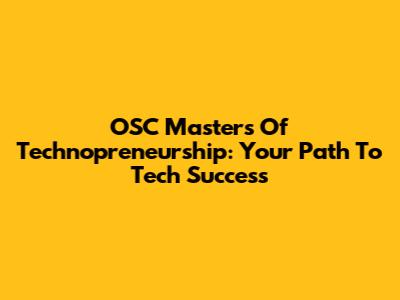 OSC Masters Of Technopreneurship: Your Path To Tech Success