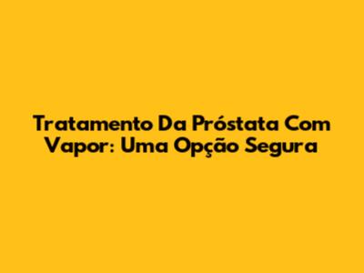 Tratamento Da Próstata Com Vapor: Uma Opção Segura