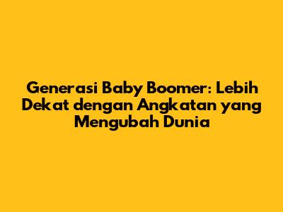 Generasi Baby Boomer adalah kelompok demografis yang lahir pada periode pasca-Perang Dunia II, umumnya antara tahun 1946 hingga 1964. Mereka adalah generasi yang lahir di tengah ledakan kelahiran bayi (baby boom) setelah berakhirnya perang, ketika banyak tentara kembali ke rumah dan ekonomi mulai pulih. Kelahiran generasi ini menandai periode perubahan sosial, ekonomi, dan budaya yang signifikan di seluruh dunia. Artikel ini akan membahas secara mendalam mengenai tahun kelahiran, ciri khas, serta pengaruh generasi Baby Boomer dalam berbagai aspek kehidupan.