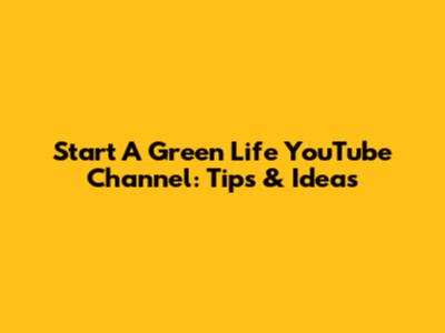 Start A Green Life YouTube Channel: Tips & Ideas