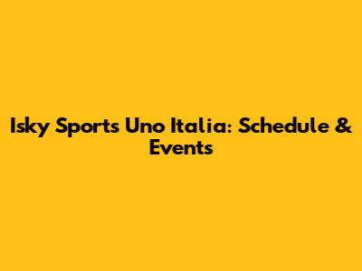 Isky Sports Uno Italia: Schedule & Events