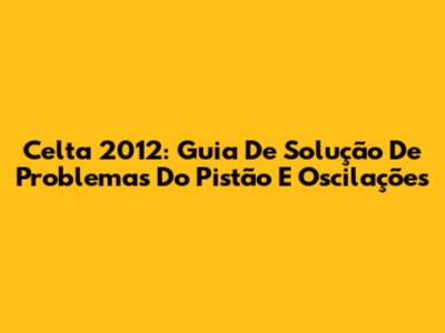 Celta 2012: Guia De Solução De Problemas Do Pistão E Oscilações