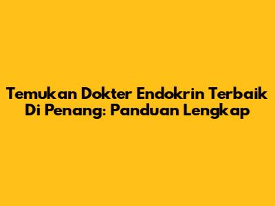 Temukan Dokter Endokrin Terbaik Di Penang: Panduan Lengkap